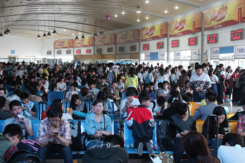 五一小長(zhǎng)假期間,客運(yùn)西站候車廳座無(wú)虛席