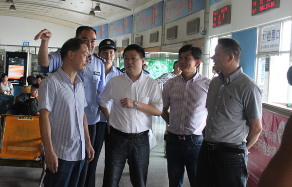9月28日上午,蓮都區(qū)委常委、區(qū)公安分局局長陳洪敏帶領(lǐng)2014全區(qū)綜合性暨國慶期間安全生產(chǎn)大檢查檢查組到客運(yùn)西站檢查國慶期間安全生產(chǎn)工作。集團(tuán)公司常務(wù)副總經(jīng)理何赤詮陪同檢查。