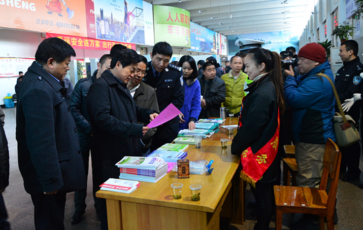 在客運東站,葛學(xué)斌向工作人員詳細了解了春運的各項準(zhǔn)備情況,查看為旅客準(zhǔn)備的春運宣傳資料、免費供應(yīng)的開水,以及一些便民咨詢服務(wù)等。