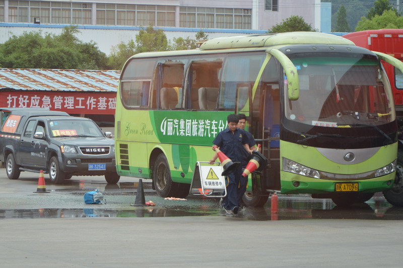 整個演練由市交通局黨組副書記、副局長李根林任總指揮,市交通局副調研員葉彪、市運管局副局長金昌平任副總指揮,麗汽集團常務副總經理何赤詮任現(xiàn)場總指揮。演練共調集各類車輛近20臺,80余人參與了演練。麗水市公安局副局長、麗水市交警支隊支隊長陳志斌,麗水市政府應急辦主任尹耀新,麗水市消防支隊副支隊長鄭志堅,麗水市安全生產監(jiān)督管理局應急處處長王琦,麗水高速交警支隊副支隊長朱宏煒,麗汽集團黨委書記、董事長葉茂,麗汽集團總經理薛和有等領導和麗汽集團相關管理人員共200余人觀摩了整個演練過程。